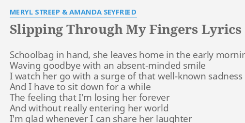 Sometimes i wish that i could freeze the picture. Do i really see what's in her mind. More images for slipping through my fingers lyrics meryl streep » Slipping through my fingers all the time. Slipping through my fingers all the time i try to capture every minute the feeling in it slipping through my fingers all the time do i really see what's in her mind each time i think i'm close to knowing she keeps on growing slipping through my fingers all the time sleep in our eyes, her and me at the breakfast table barely awake i let precious time go by